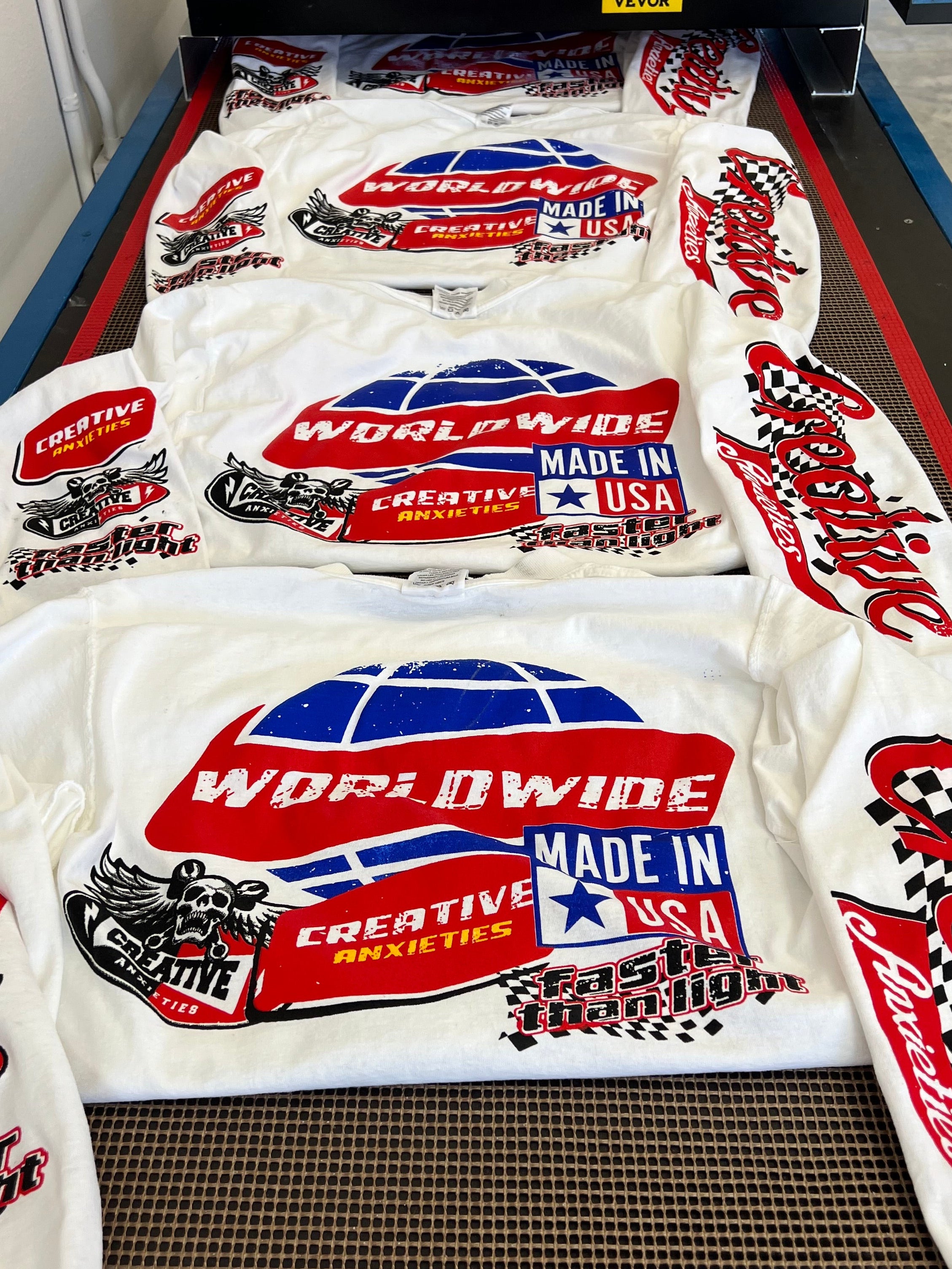 Screen Printing is the highest quality form of printmaking. We can achieve stunning multiple color prints and various visual effects to bring your brand, band, and/or business garments stand out from the rest.